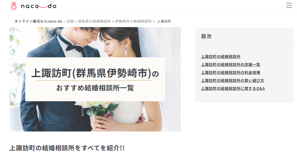 群馬県伊勢崎市の結婚相談所 婚活ラボ Andante(アンダンテ)の代表カウンセラー中村 勇輝です。この度、naco-do様の運営事務局の方からオファーを頂き、当相談室をnaco-do様のWebサイトにて紹介して頂きました。紹介して頂いたサイトは以下をクリック(タップ)してみてください!
